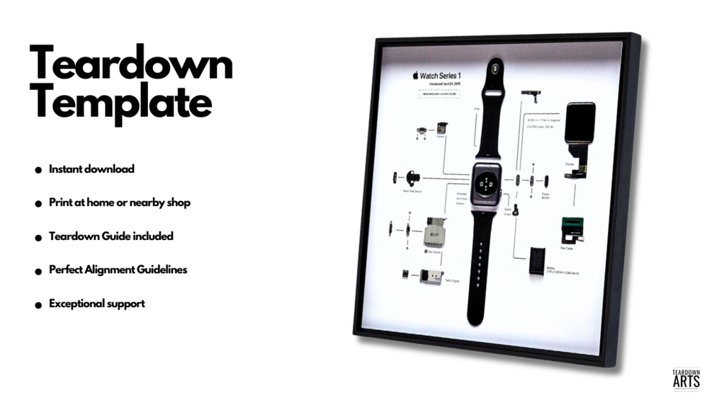 Download Deconstruction template for Series 1 Apple Watch. Teardown Template for Series 1 Apple Watch. This can be framed in a 12x12 inch frame.