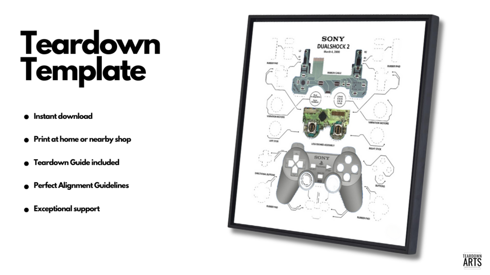 Download Sony DualShock 2 Teardown Template Download. Teardown Template for Sony DualShock 2 This can be framed in a 12.4X12.4inch frame.