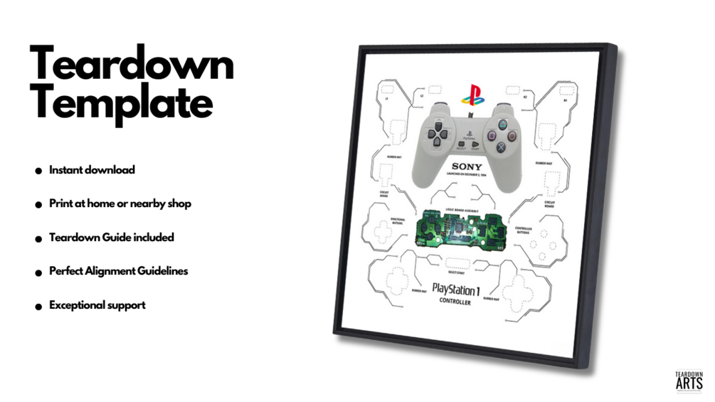 Download Sony PlayStation 1 Controller Teardown Template Download. Teardown Template for Sony PlayStation 1 Controller This can be framed in a 12.4X12.4inch frame.